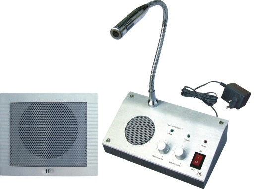 Interkom kasowy El Home WI-01A3 jest przeznaczony do montażu w szybie odgradzającej klienta od personelu w banku, aptece czy sklepie. Zestaw składa się z bazy z wbudowanym mikrofonem oraz głośnikiem umożliwiającą regulację głośności oraz podłączenie zewnętrznego rejestratora dźwięku oraz zewnętrznego mikrofonu i głośnika.