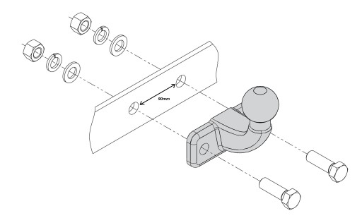 Uniwersalny rozstaw śrub 90mm. Średnica kuli to 50mm.