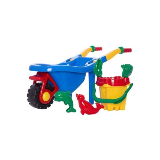 Taczka z łopatą i grabiami dużymi dwukolorowymi to podstawowy zestaw Małego Ogrodnika. Mając takie narzędzia, nasza Pociecha z pewnością nam pomoże przy wiosennych i jesiennych porządkach w ogrodzie.
