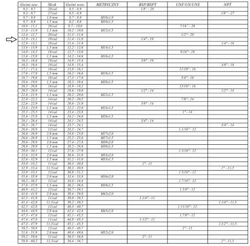 D1 - 12,9mm - 13,1mm - 1/4'