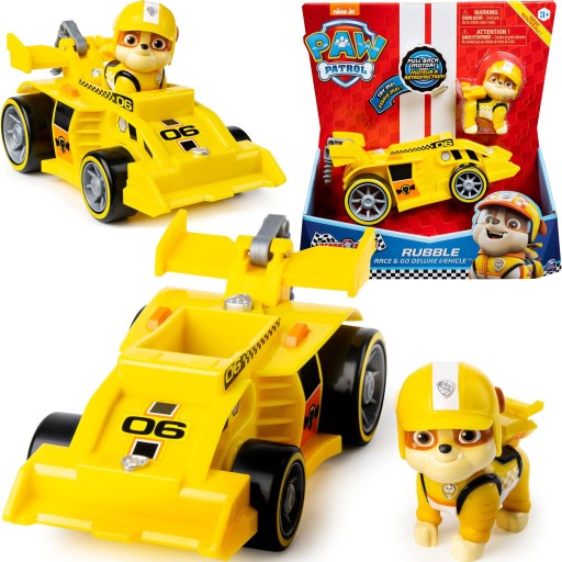 Ten wyścigowy pojazd Rubble'a z pewnością przypadnie do gustu wszystkim małym fanom Psiego Patrolu. Dzięki możliwości skompletowania wszystkich piesków z pojazdami wyścigowymi, dzieci mogą bawić się w wyścigi pomiędzy szczeniakami. Auta są wykonane solidnie i z dbałością o szczegóły, będą więc cieszyć się przez długi czas, dostarczając dzieciom świetnej zabawy.