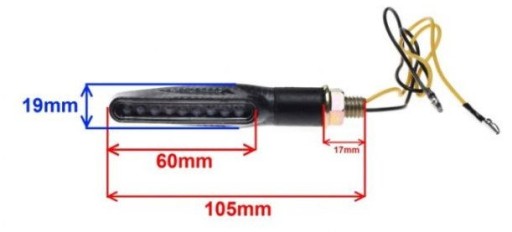 Kierunkowskaz należy wpiąć to tradycyjnej instalacji. Kierunkowskaz ma dwa kable. Należy pamiętać o właściwym podpięciu przewodów do instalacji swojego pojazdu.