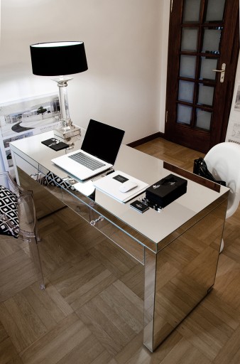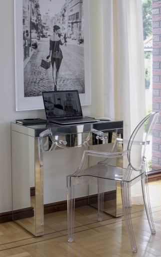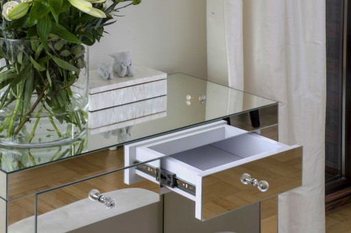 Biurko lustrzane z kolekcji LONG ISLAND z dwiema symetrycznymi szufladami to nasza nowość. Piękny, nieodzowny mebel domowego gabinetu, który może służyć także jako toaletka.