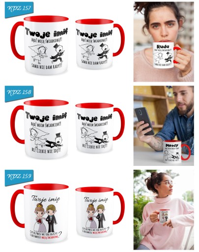 2. W wiadomości do sprzedającego napisz nam numery wzorów (znajdują się powyżej każdej z prezentowanych grafik) kubków jakie chcesz otrzymać. Koniecznie napisz również jakie imię mamy umieścić w miejscu do tego przeznaczonym (imię/pseudonim podaj w takiej odmianie w jakiej chcesz aby znalazło się na kubku).