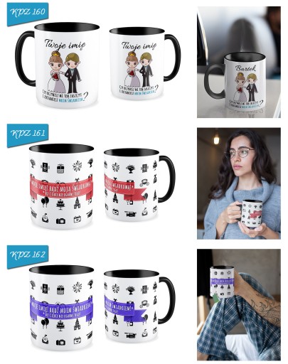 2. W wiadomości do sprzedającego napisz nam numery wzorów (znajdują się powyżej każdej z prezentowanych grafik) kubków jakie chcesz otrzymać. Koniecznie napisz również jakie imię mamy umieścić w miejscu do tego przeznaczonym (imię/pseudonim podaj w takiej odmianie w jakiej chcesz aby znalazło się na kubku).