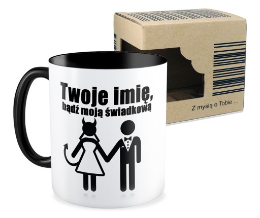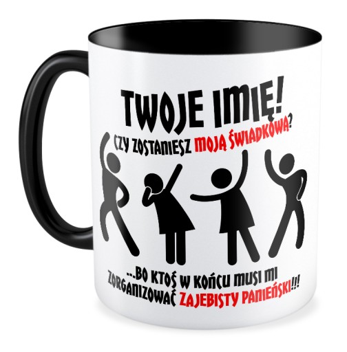 Kubek z czarnym wykończeniem z zaproszeniem dla ŚWIADKA i ŚWIADKOWEJ