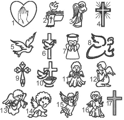 Proszę się nie sugerować kolorem grafik, cały haft na szatce zostanie wykonany w jednym kolorze wybranym przez Ciebie.