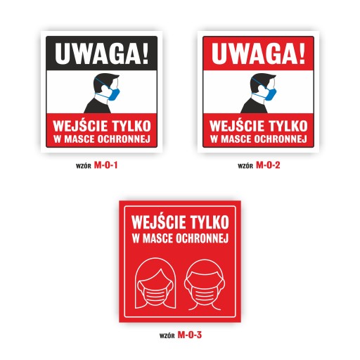 TABLICZKA PCV ZADRUKOWNA METODĄ UV UWAGA WEJŚCIE TYLKO W MASCE OCHRONNEJ 22 x 22 cm - 3 WZORY !