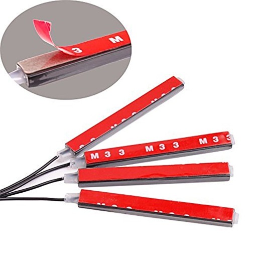 Profesjonalne, listwy LED do wnętrza auta 4x9 LED / RGB - 8 kolorów. Możliwość starowania za pomocą pilota zdalnego sterownia. 4 TRYBY PRACY: JUMP3, JUMP7 naprzemienne wyświetlanie kolorów, FADE3, FADE7- wolna sekwencja płynnego przejścia kolorów.