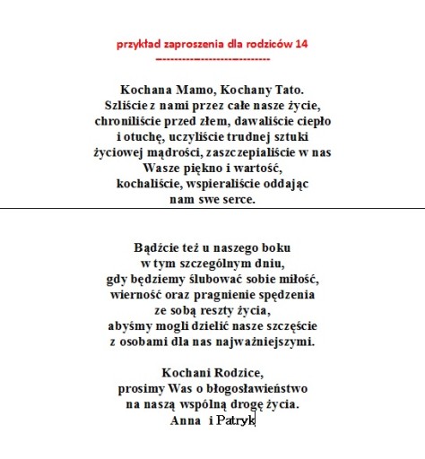 - wybrany tekst zaproszenia