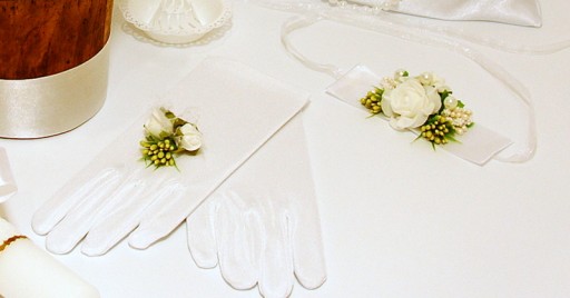 Rękawiczki komunijne wykonane z elastycznego, matowego materiału w uniwersalnym rozmiarze.