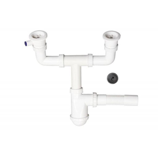 Syfon zlew podwójny z wyjściem na pralkę sitko metalowe.