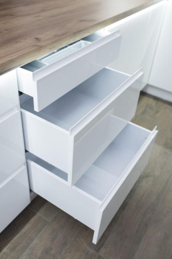 Szuflady wyposażone są w systemy SevrollBox Slim jest to innowacyjny system szuflad.
