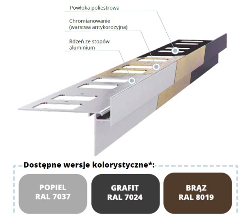 Na życzenie klienta wykonujemy profile w każdym kolorze dostępnym we wzorniku kolorów RAL dopłata do koloru zleconego na zamówienie 20%.