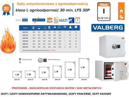 Sejfy ASG - KLASA 1 , ognioodporność 30 min. LF30P,