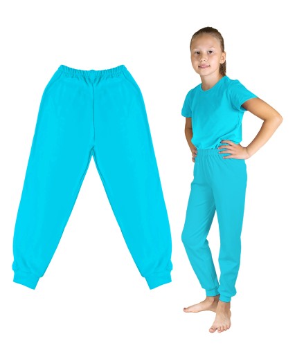TURKUSOWE, LEKKIE, DZIECIĘCE, BAWEŁNIANE SPODNIE 122