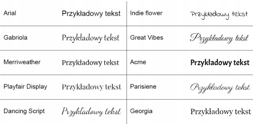 W przypadku nie podania informacji używamy domyślnej czcionki ,,Dancing Script".