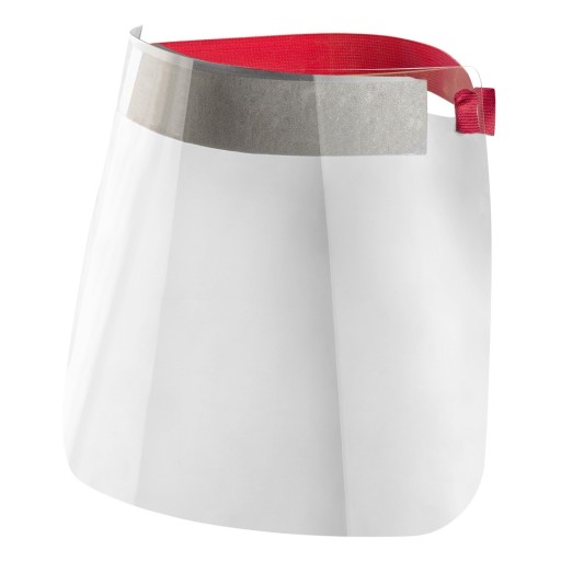 Osłona twarzy składająca się z szybki oraz taśmy opasującej głowę.