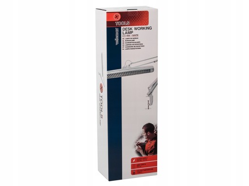 Lampa z regulowanymi ramionami przykręcana do stołu lub do innych urządzeń za pomocą dołączonego imadełka. Duże rozmiary i nieograniczona regulacja czynią ją bardzo użyteczną podczas codziennych prac.