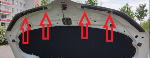 Na foto zaznaczono mocowanie odbojników na przykładzie SKODA FABIA III. W niektórych modelach występują tylko 2 sztuki.
