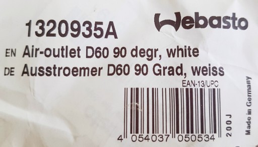 ВЫХОДНОЙ ДИФФУЗОР ВОЗДУХА FI60 WEBASTO белая решетка