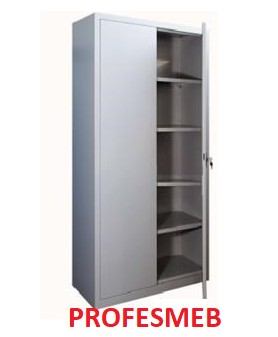 Wykonanie: blacha zimnowalcowana malowana proszkowo w kolorze jasnoszarym RAL 7035. Drzwi skrzydłowe ze schowanymi zawiasami. Uchwyt drzwiowy z zamkiem zabezpieczającym - zamykanie kluczowe. Szafa posiada cztery półki przestawne co 25 mm.
