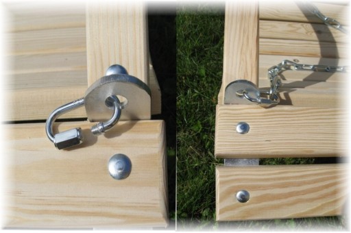 Posiada zaokrąglone bezpieczne uchwyty do zawieszenia na łańcuchach.