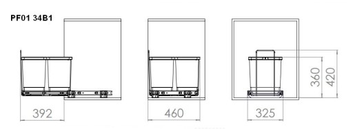 - wymiary koszy: 1 x 18 litrów, s: 30 cm, g: 22.5 cm, w: 34 cm; 2 x 8 litrów, s: 22,5 cm, g: 15 cm, w: 34 cm.