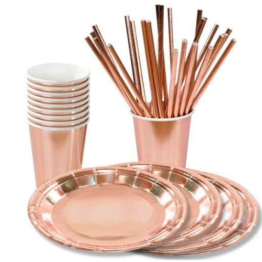 НАБОР БУМАГИ «РОЗОВОЕ ЗОЛОТО» Тарелки, чашки, соломинки