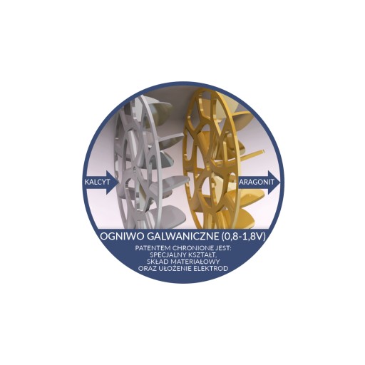 Konstrukcja elektrod, chroniona patentem (ТGР® - Turbulentna Galwaniczna Polaryzacja), wskutek narzucenia wodzie wirującego przepływu, zmienia strukturę minerałów w niej zawartych.
