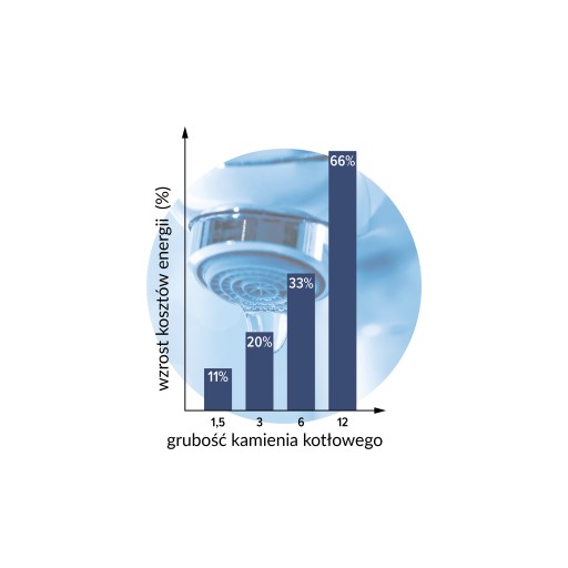 - potwierdzona skuteczność w redukcji kamienia kotłowego 76% certyfikowane przez IAPMO