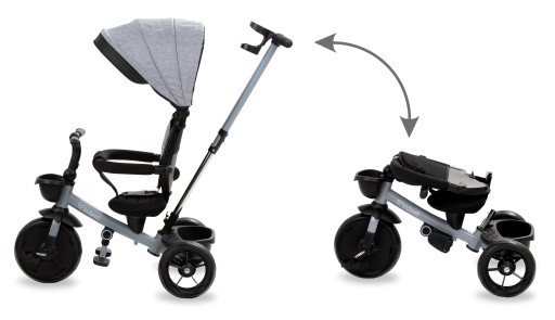 Składane oparcie siedziska oraz kierownica, a także wyjmowany uchwyt do prowadzenia rowerka, pozwalają na zmniejszenie jego gabarytu. Dzięki tej funkcji, rowerek z łatwością zmieści się w bagażniku samochodowym.