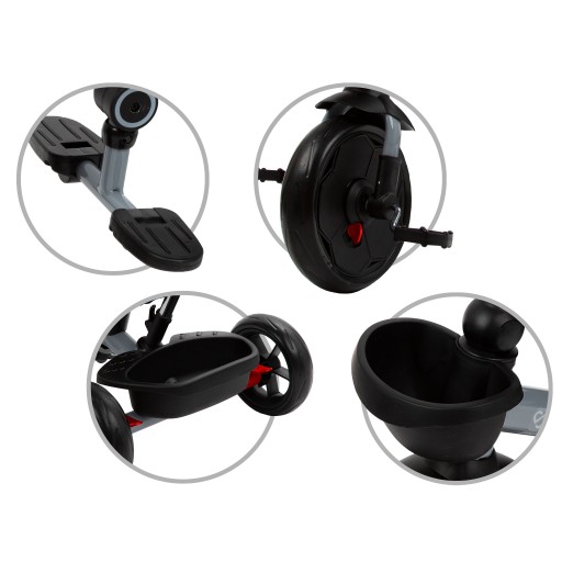 Duże opony z pianki EVA, nie wymagające pompowania, są lekkie i wytrzymałe. Przednie koło wyposażone zostało w błotnik, osłonę na szprychy i funkcję „wolnego koła”.