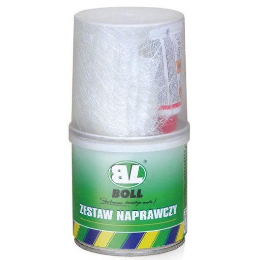 BOLL zestaw naprawczy składa się z żywicy poliestrowej (242 g), utwardzacza (8 g) oraz maty szklanej (0,25 m2). Służy zarówno do wypełniania znacznych ubytków materiału w karoseriach samochodowych, łodziach, przyczepach itp. jak i do wzmacniania i usztywniania konstrukcji naprawianych elementów. Żywica posiada bardzo dobrą przyczepność do metalu, powierzchni plastikowych, stali, szkła, drewna i betonu. Jest odporna na temperaturę do 80°C, wpływ czynników atmosferycznych, benzyny, smarów, olejów, rozcieńczonych kwasów i zasad. Cechuje się dużą sprężystością i krótkim czasem utwardzenia. Po utwardzeniu posiada bardzo dużą wytrzymałość mechaniczną, może być szlifowana i pokrywana dowolnymi szpachlami poliestrowymi.