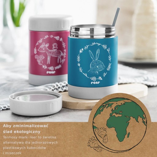 - Ten termos świetnie zastąpi jednorazowe plastikowe kubki/ miseczki, które trafiają do śmieci po jednorazowym użyciu.