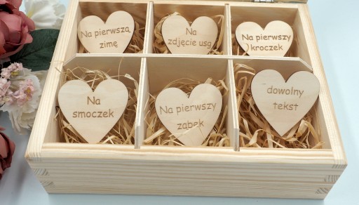 - podać tekst na serduszka w środku- jeśli ulegają zmianie- jeśli nie będą Państwo nanosić zmian to na ostatnim serduszku grawerujemy napis " na pamiątkę"