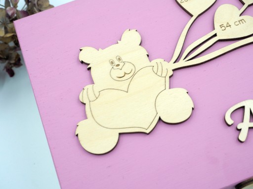 - dodatkowo imię wycięte laserowo oraz 6 serduszek w środku