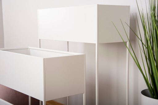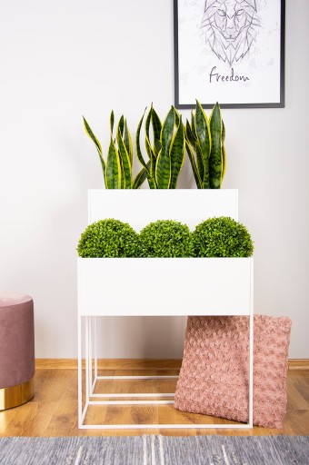 Biały kolor strukturalny pięknie komponuje się z nowoczesnym wnętrzem w stylu loftowym, industrialnym lub skandynawskim nadając mu elegancji i wyjątkowego charakteru. Struktura farby pomaga zachować stojak na donicę w idealnej czystości, ponieważ palce nie zostawiają na niej śladów.