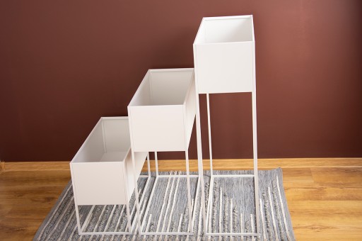 Stojak na donice dzięki surowości materiału jakim jest stal oraz delikatnym liniom kwadratowych prętów doskonale sprawdzi się w aranżacji minimalistycznych i nowoczesnych wnętrz. Ozdoba może służyć nie tylko wyeksponowaniu kwiatów we wnętrzu lecz także jako stojak na książki, zabawki czy podręczny barek.