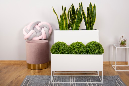 Biały kolor strukturalny pięknie komponuje się z nowoczesnym wnętrzem w stylu loftowym, industrialnym lub skandynawskim nadając mu elegancji i wyjątkowego charakteru. Struktura farby pomaga zachować stojak na donicę w idealnej czystości, ponieważ palce nie zostawiają na niej śladów.
