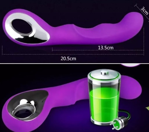 Miejsce do podpięcia ładowarki znajduje się na samym dole wibratora. Wibrator posiadamy w kolorze fioletowym