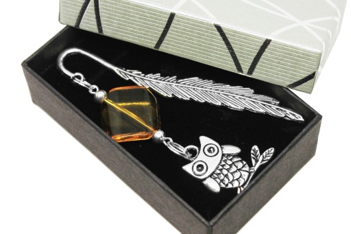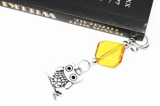 Elegancka zakładka do książki z zawieszką w kształcie sowy z dodatkiem koralika akrylowego.