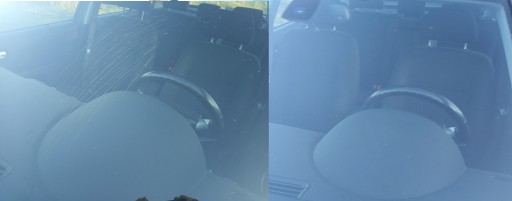 Efekty działania zestawu - szyba przed i po polerowaniu
