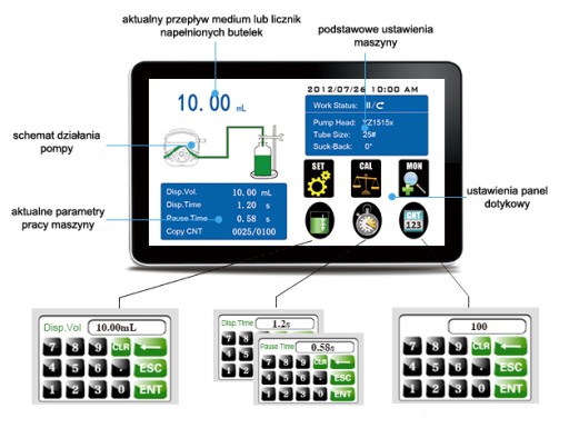 - Możliwość ustawiania dozy, szybkości dozowania, czasu pauzy oraz dokładną ilość butelek do wydozowania,
