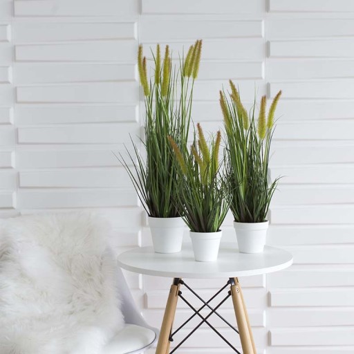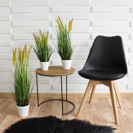 Łatwe w czyszczeniu. Mogą nam służyć przez lata wprowadzając spokój zieleni dzięki naturalnemu odwzorowaniu wyglądu naturalnych roślin. Trawa dostarczana jest w całości w doniczce.