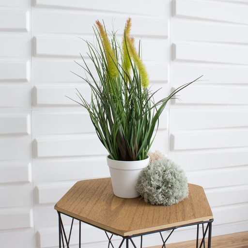 Łatwe w czyszczeniu. Mogą nam służyć przez lata wprowadzając spokój zieleni dzięki naturalnemu odwzorowaniu wyglądu naturalnych roślin. Trawa dostarczana jest w całości w doniczce.