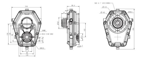 Port ssanie D1: 40mm (4xM8) , B1: 19mm