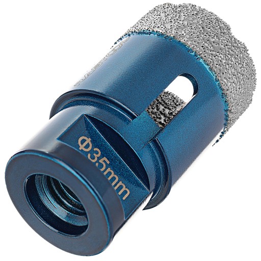 Koronki diamentowe osadzone w technologii próżniowego lutowania gwarantują szybkość wiercenia w najtwardszych materiałach. Dodatkowe boczne otwory wentylacyjne przyspieszają wiercenie i usuwanie materiału. Jakość na najwyższym poziomie.