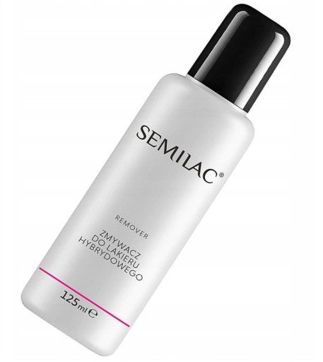 Delikatnie usuwa lakier hybrydowy Semilac® nie powodując uszkodzeń płytki paznokcia. Dodatkowy składnik, lanolina, zapobiega wysuszaniu się skórek.