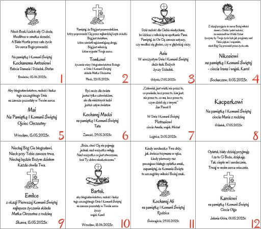 - Wybrać gotowy wzór 1-12 oraz podać w odmienionej formie imiona, od kogo, datę i miejscowość